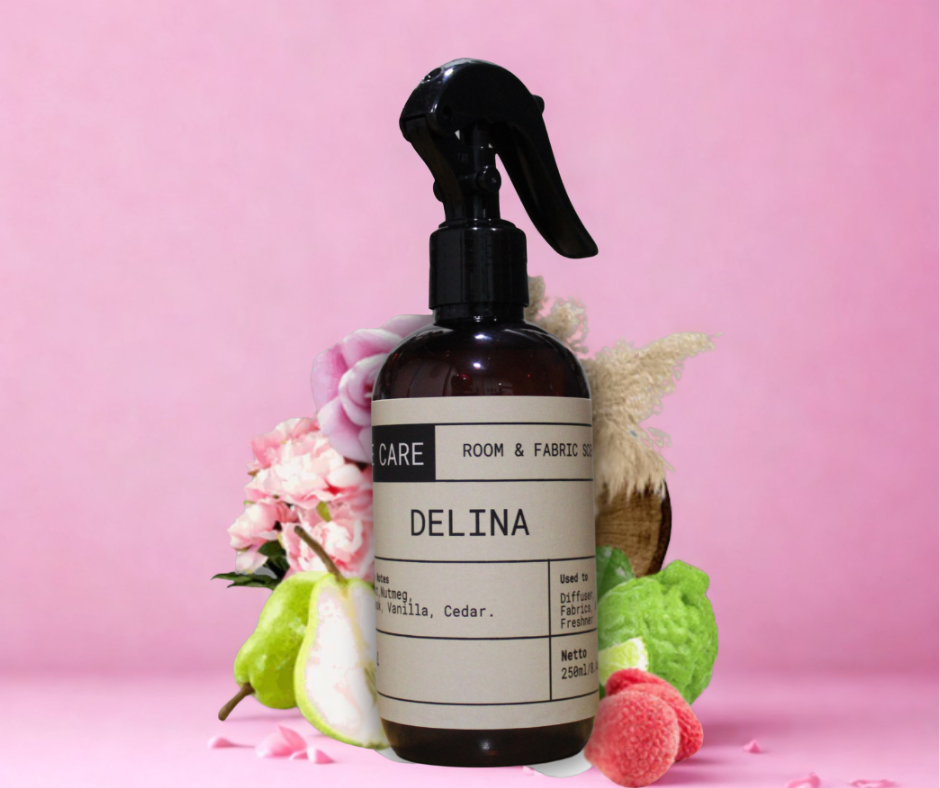 Home Spray inspirado en Delina Transforma cualquier espacio en un ambiente lujoso y sofisticado. Ideal para tu oficina, carro, recámara o donde quieras dejar una impresión elegante.