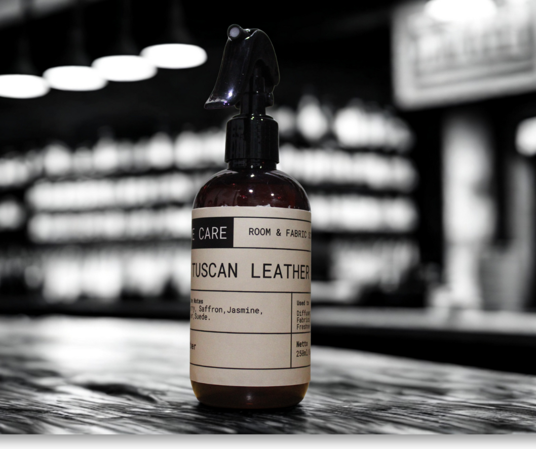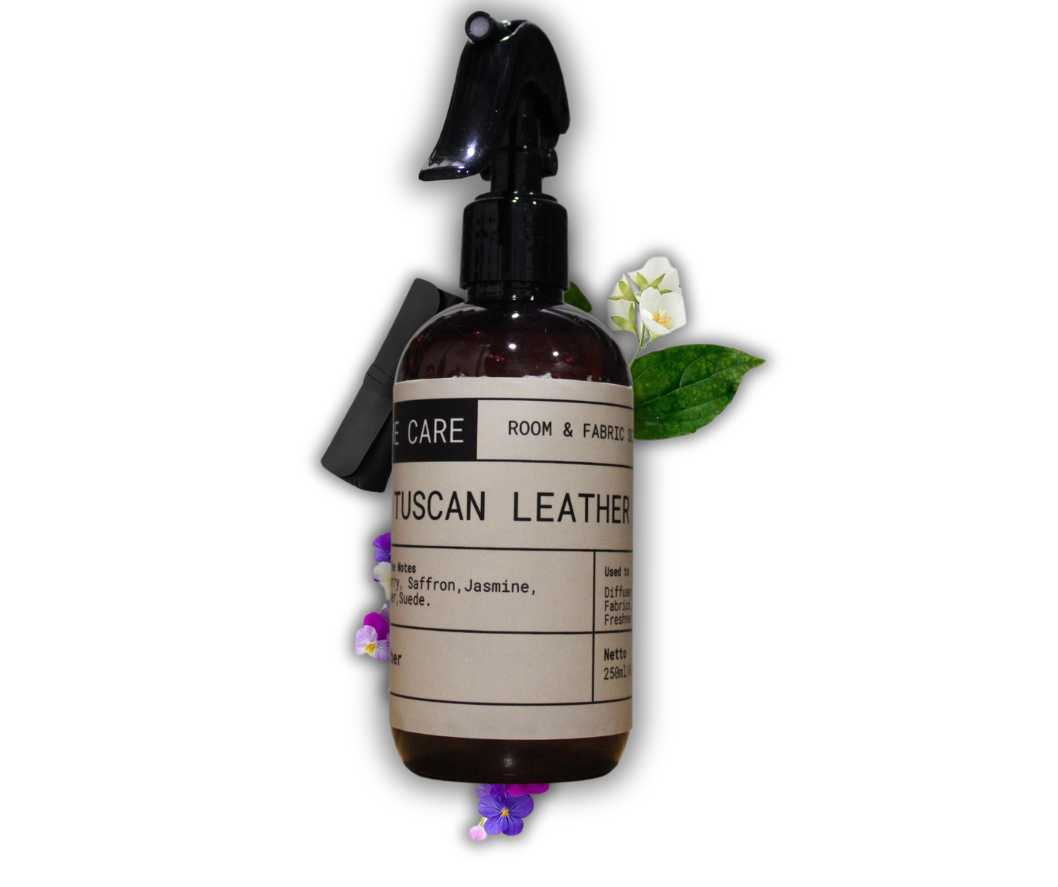 Home Spray inspirado en Tuscan Leather Transforma cualquier espacio en un ambiente lujoso y sofisticado. Ideal para tu oficina, carro, recámara o donde quieras dejar una impresión elegante.